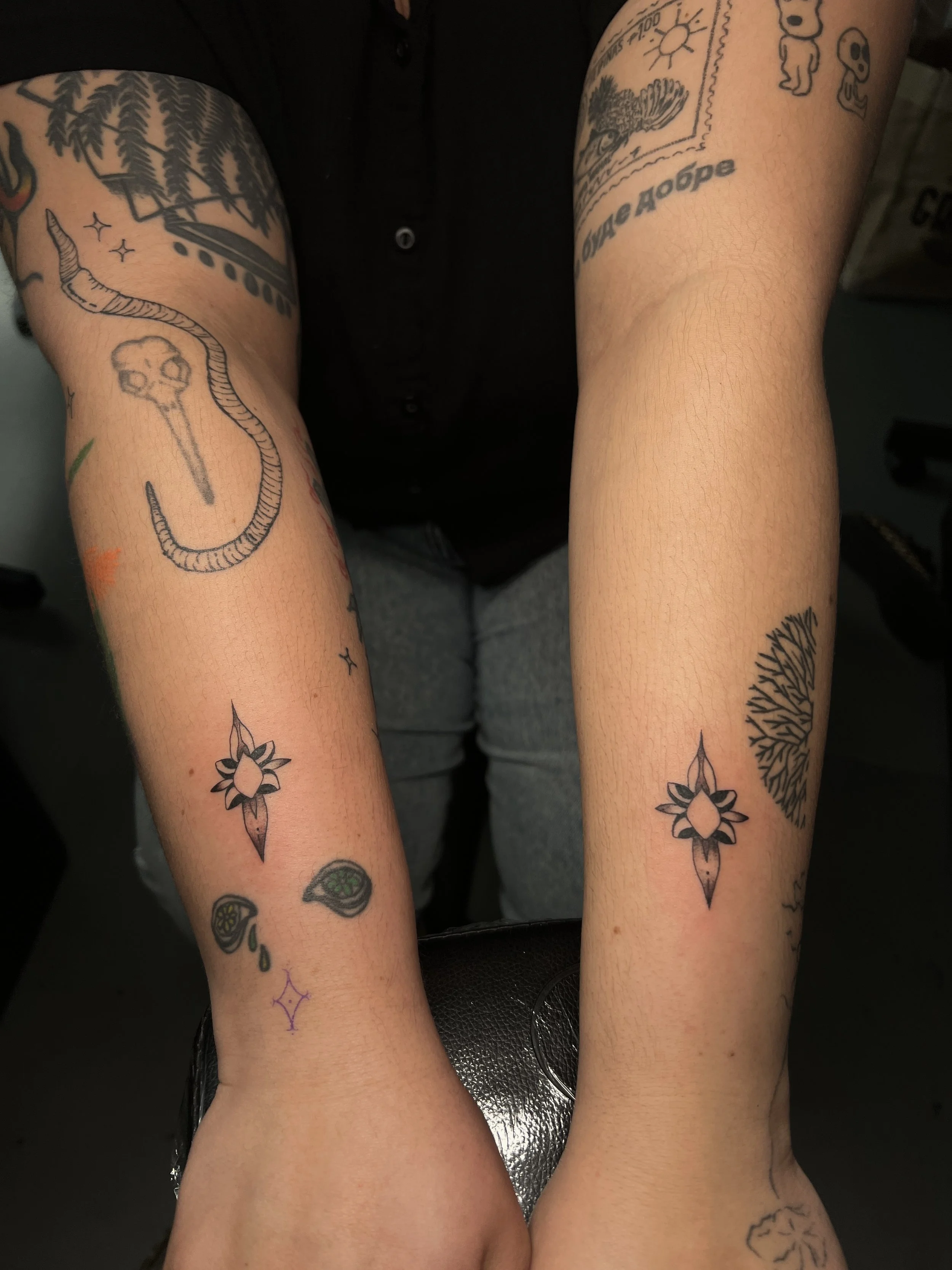 "Incredible talent and amazing experience. Camille gave my mother and I matching tattoos of a drawing I brought in. She perfectly executed the drawing with her own twist to it that we asked for. She’s professional while making us feel comfortable. Would recommend to anyone and will definitely be going back for more of her work!"